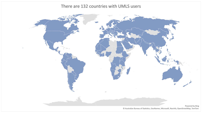 As of January 2023, there are more than 30,000 active UMLS users around the world in 132 countries.